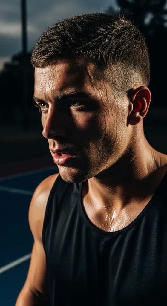 A modern buzz cut with subtle fading gives a fearless, no-excuses vibe. It’s practical, tough, and perfect for players who want zero distractions on or off the court.