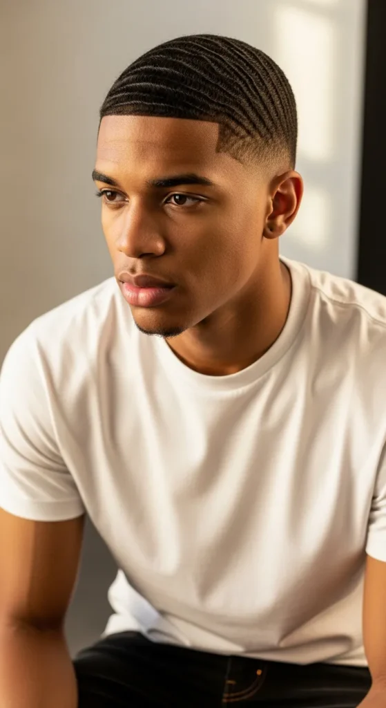 Barber Suggestion: Brush daily with a soft wave brush and moisturize the scalp. Healthy hydration keeps wave patterns defined even after heavy sweating.
