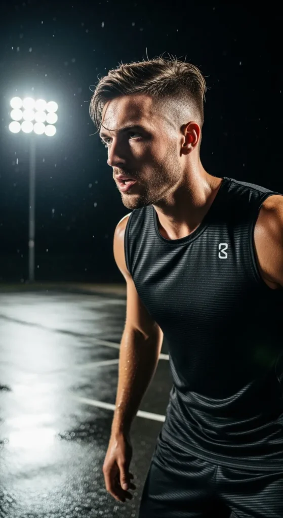 Barber Suggestion: Avoid heavy gels. Sweat breaks them down fast, while matte products keep structure through long games.
