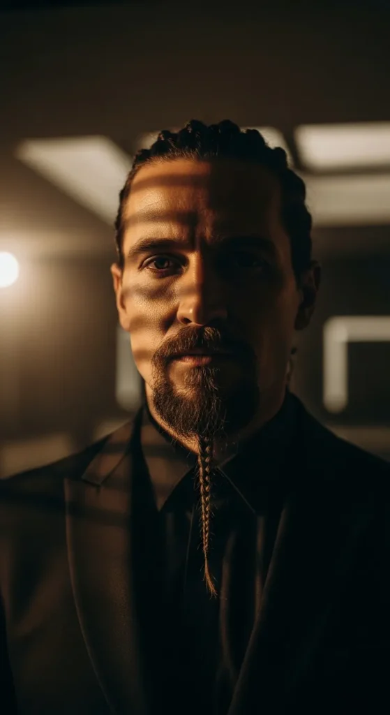 A braided goatee that drops below the chin creates a strong focal point. It’s dramatic, confident, and instantly recognizable.