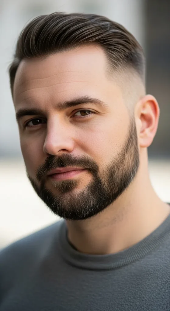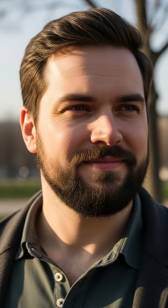 This beard narrows the cheeks and pulls attention downward, creating a longer facial illusion. It’s subtle, stylish, and perfect for guys who want definition without going extreme.