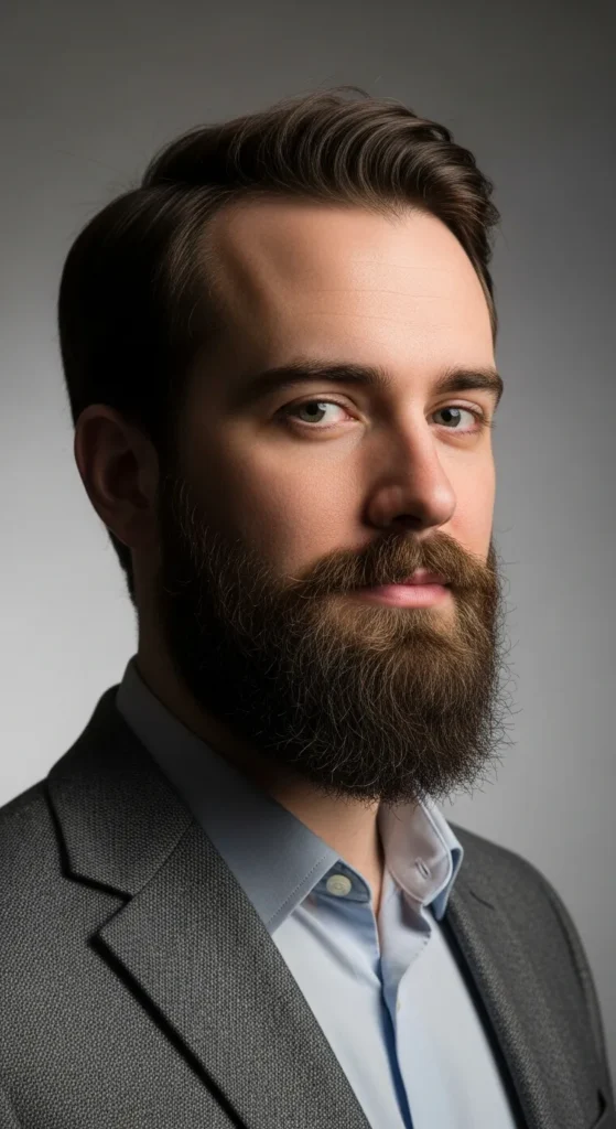 A gradual fade from sideburns to chin gives this beard depth and flow. It sculpts without harsh lines, making it perfect for everyday confidence.