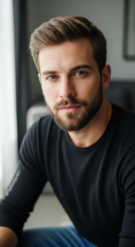 A near-beard shadow with defined borders offers subtle masculinity. It sharpens features without committing to full growth, perfect for minimalists.
