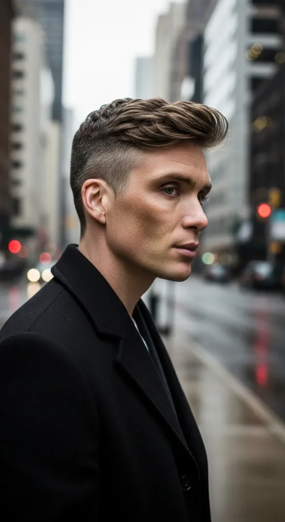 Minimalist and intelligent-looking, this short crop with slight forward direction channels Cillian Murphy’s sleek style. It feels intentional, modern, and quietly bold.