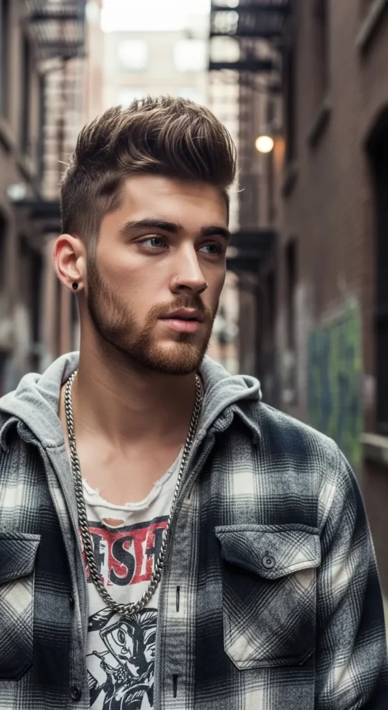 A short, modern micro quiff brings attitude without extra height. Inspired by Zayn Malik’s edgy cuts, it works well with fades and strong beard lines.