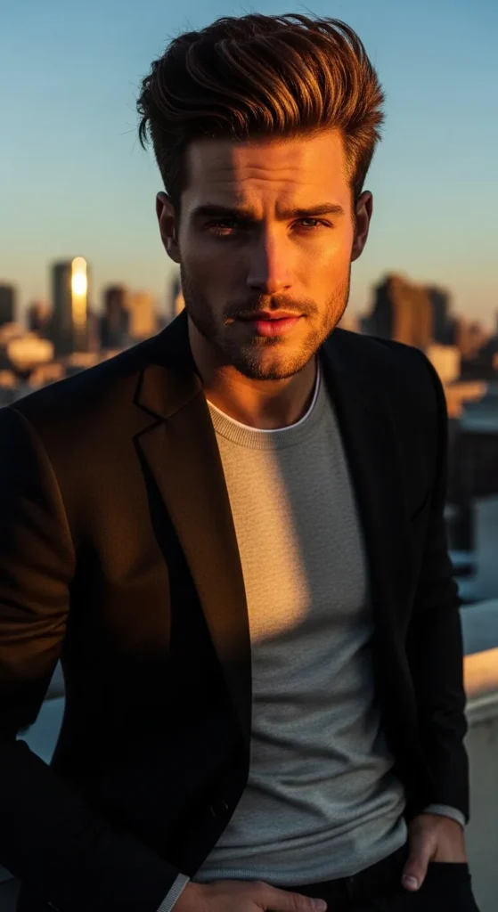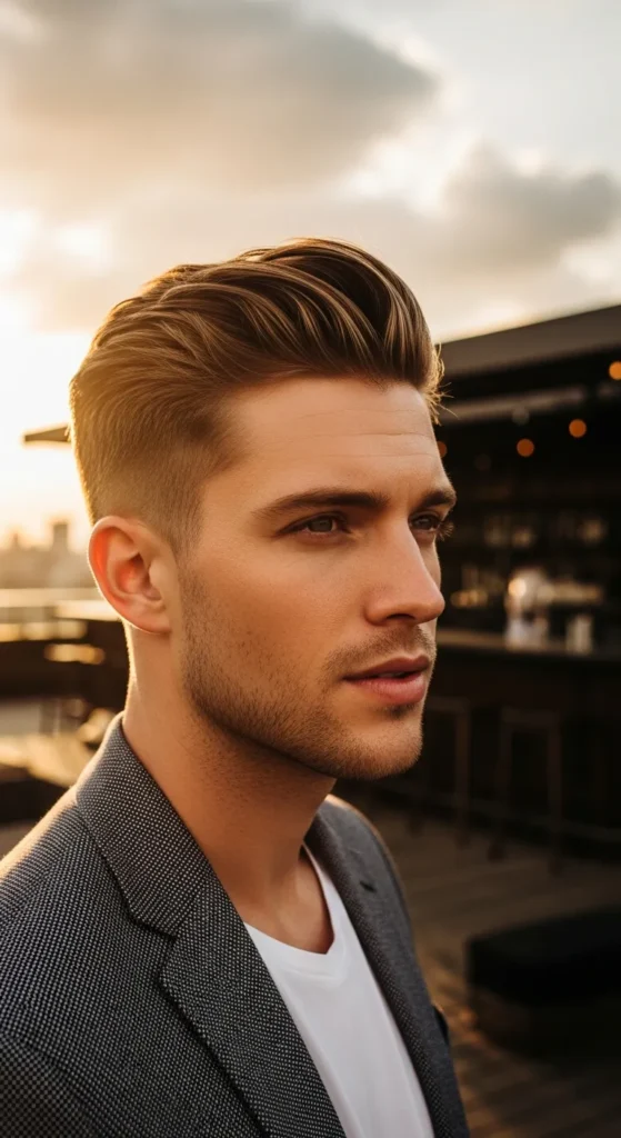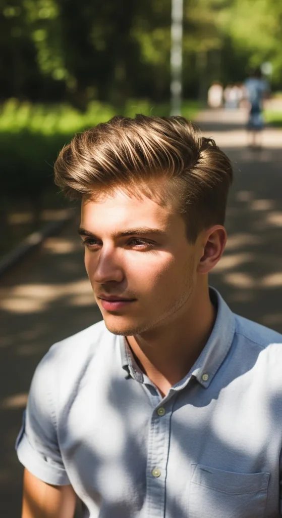 A smaller, more wearable version of the quiff with subtle volume. It’s clean, stylish, and easy to maintain in summer.