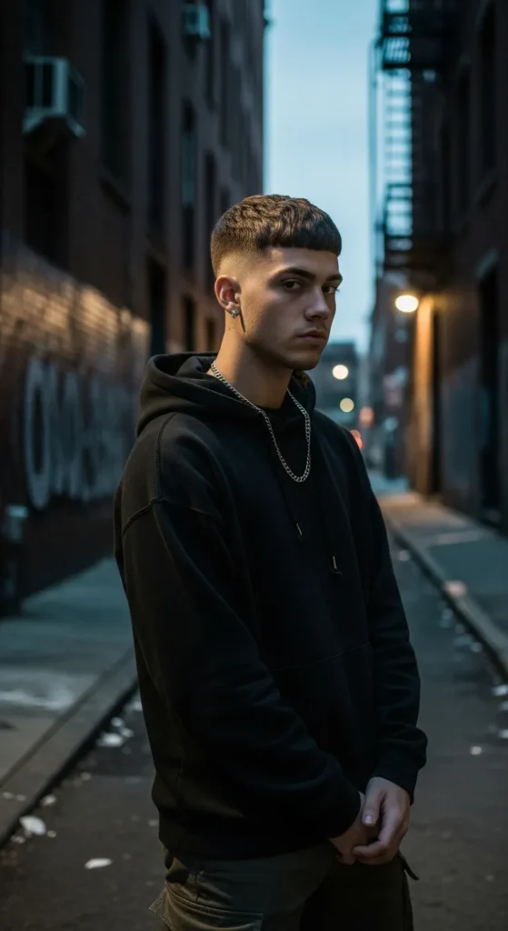 A sharp yet wearable version of the Caesar with slightly textured edges. It frames the face and stays neat even in humid weather.