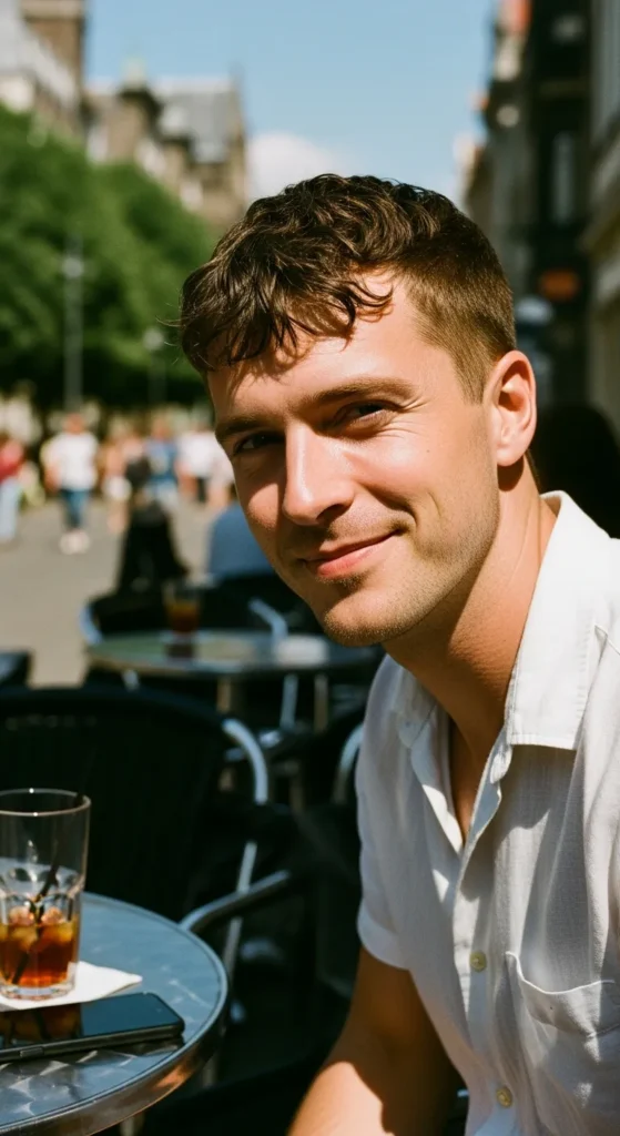 Short, textured waves with a soft fringe that sits naturally on the forehead. It’s lightweight, breathable, and perfect for guys who want style without the hassle.