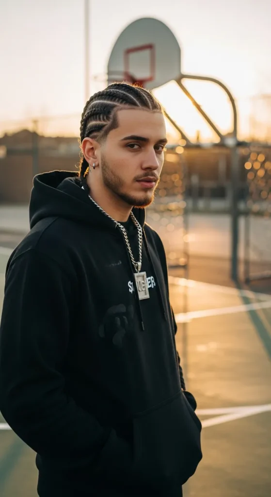 Clean, evenly spaced straight-back cornrows never miss. They give structure to your face, highlight strong features, and work effortlessly with fades or natural edges. It’s simple, masculine, and sharp enough for both everyday grind and weekends out.