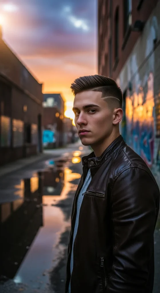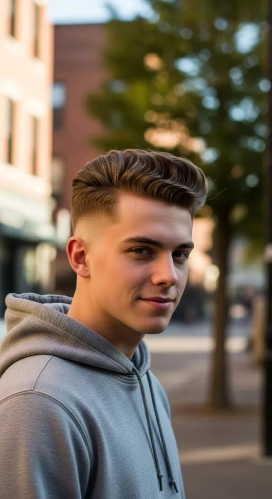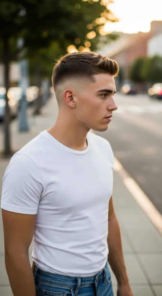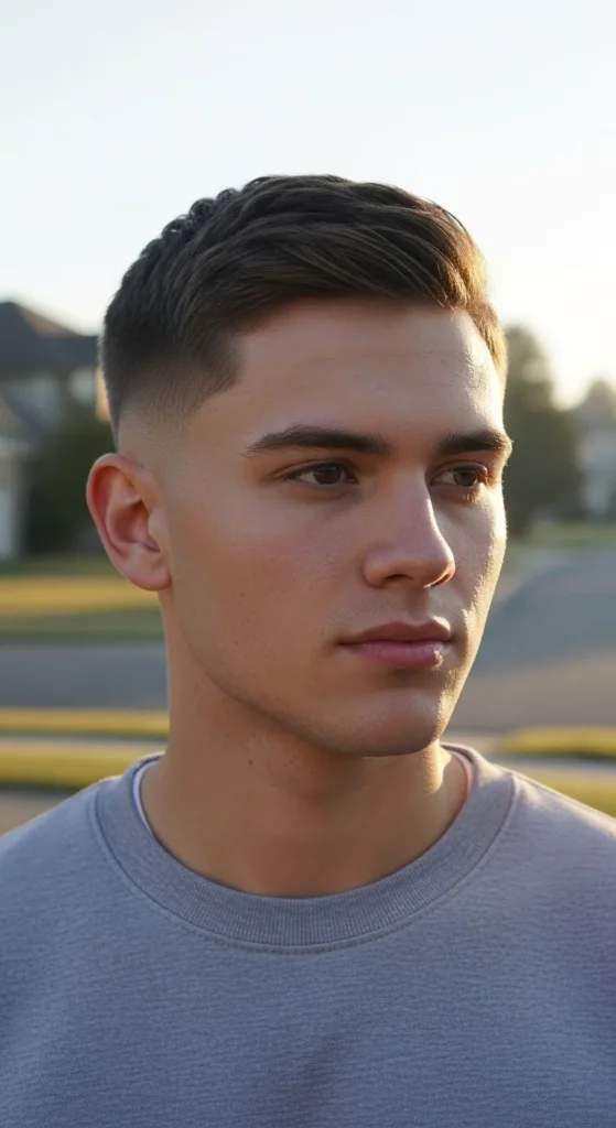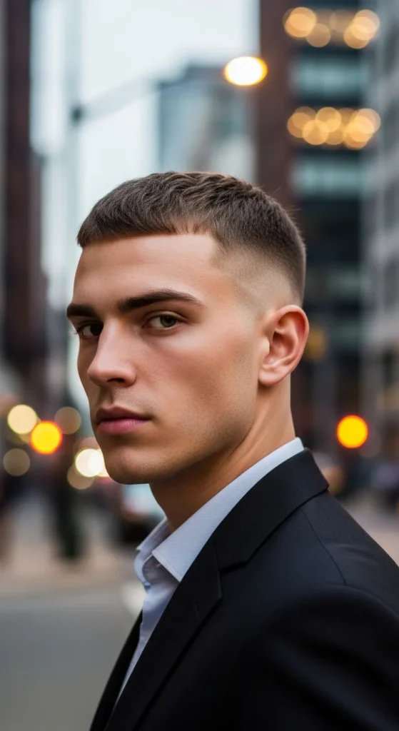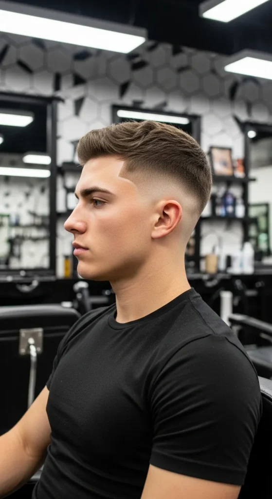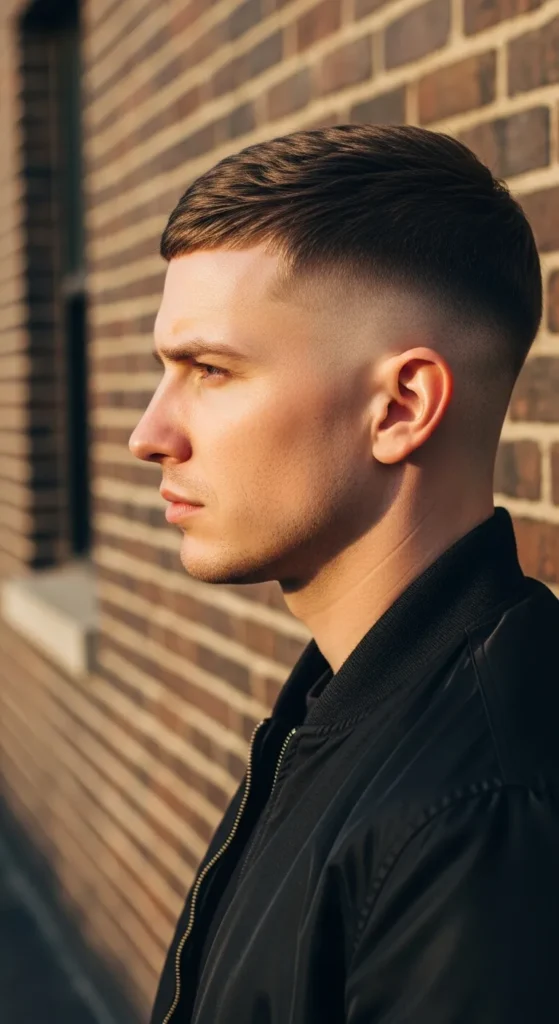 This style is all about precision. The sides are faded tight with razor-sharp detailing, while the top stays evenly cropped. It’s bold, crisp, and built for guys who love that just-left-the-barber look.