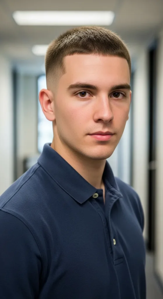 The Fresh Buzz Crew leans slightly shorter on top, almost buzzed but still structured like a crew. It’s bold, ultra-clean, and incredibly easy to maintain.