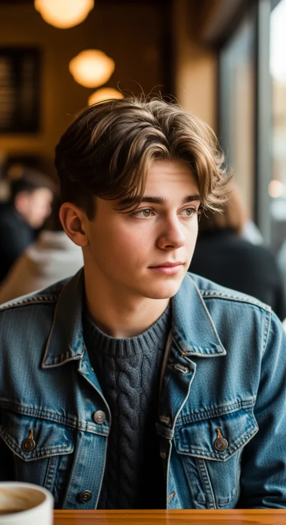 Slightly tousled curtain bangs with soft texture create a relaxed creative look often seen in cozy café settings. It’s casual, stylish, and effortlessly photogenic.