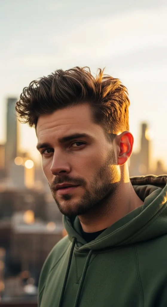 Barber Suggestion: Use a volumizing powder at the roots. It instantly lifts the hair and keeps the messy style from falling flat during the day.