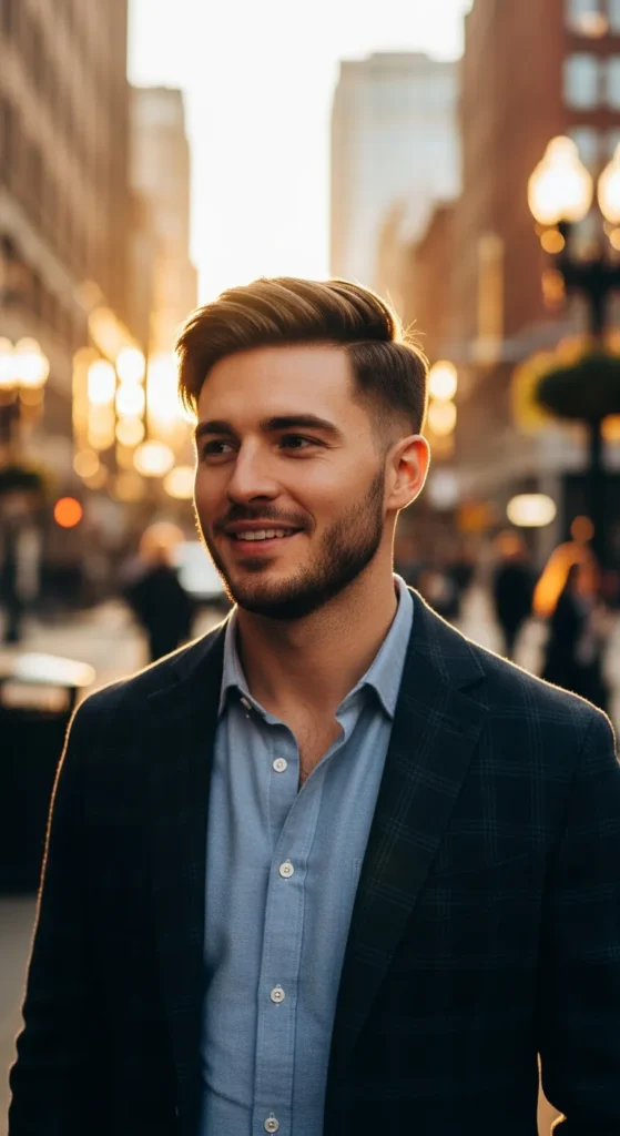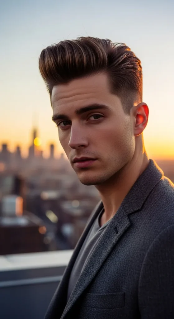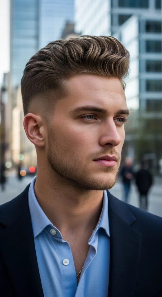 Barber Suggestion: Ask for gradual layering on top. It prevents the pompadour from feeling bulky and helps the style flow smoothly backward.