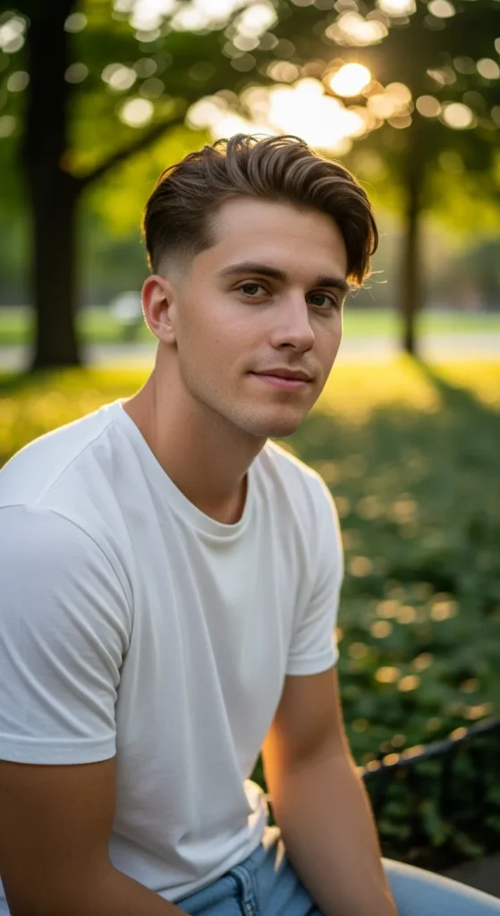 The Ivy Edge mixes an Ivy League-inspired top with a modern drop fade. The result feels polished yet trendy, making it a great option for guys who like clean, structured styles.