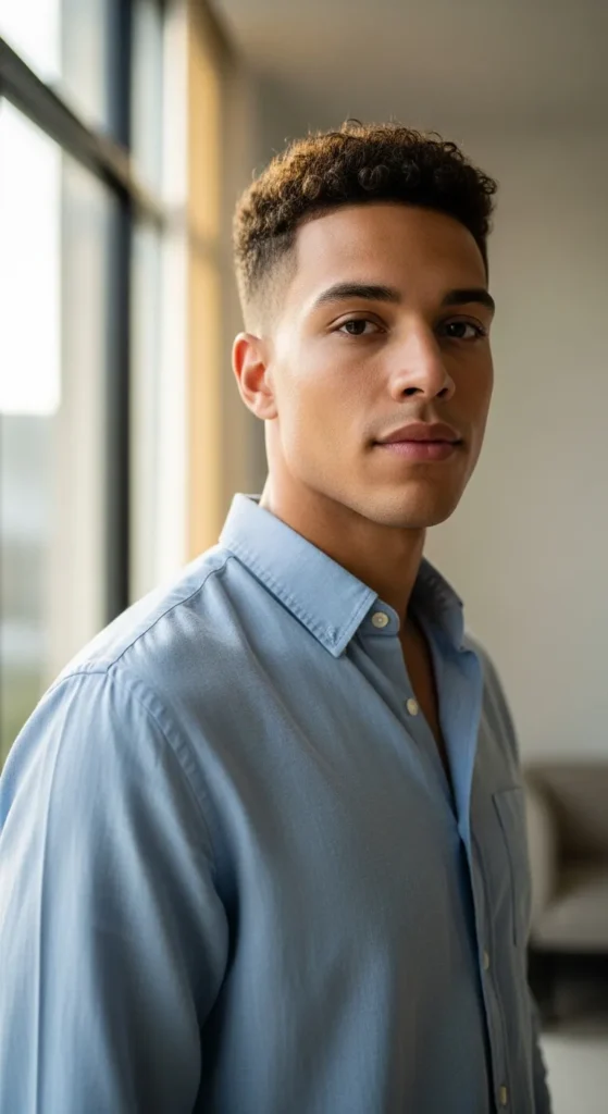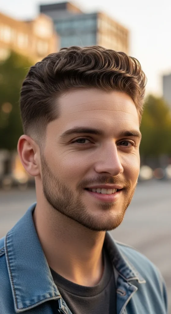 Intentional messiness on top paired with a clean fade creates contrast that feels effortless. It’s relaxed, stylish, and perfect for low-maintenance guys.