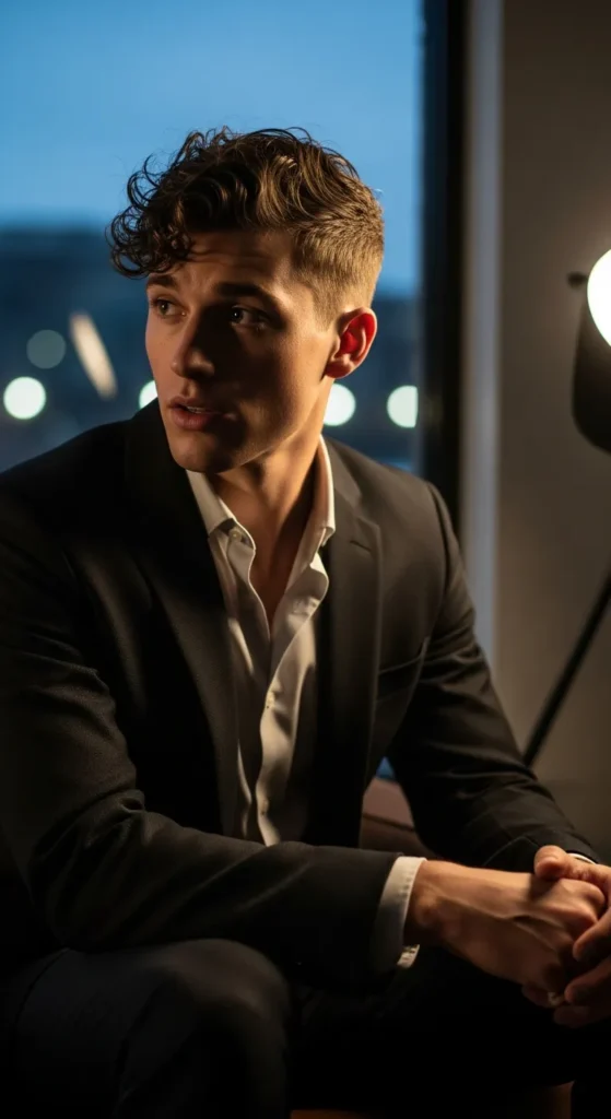 Barber Suggestion: Blow-dry curls forward slightly before setting. This adds lift to the quiff and helps it hold shape longer throughout the day.