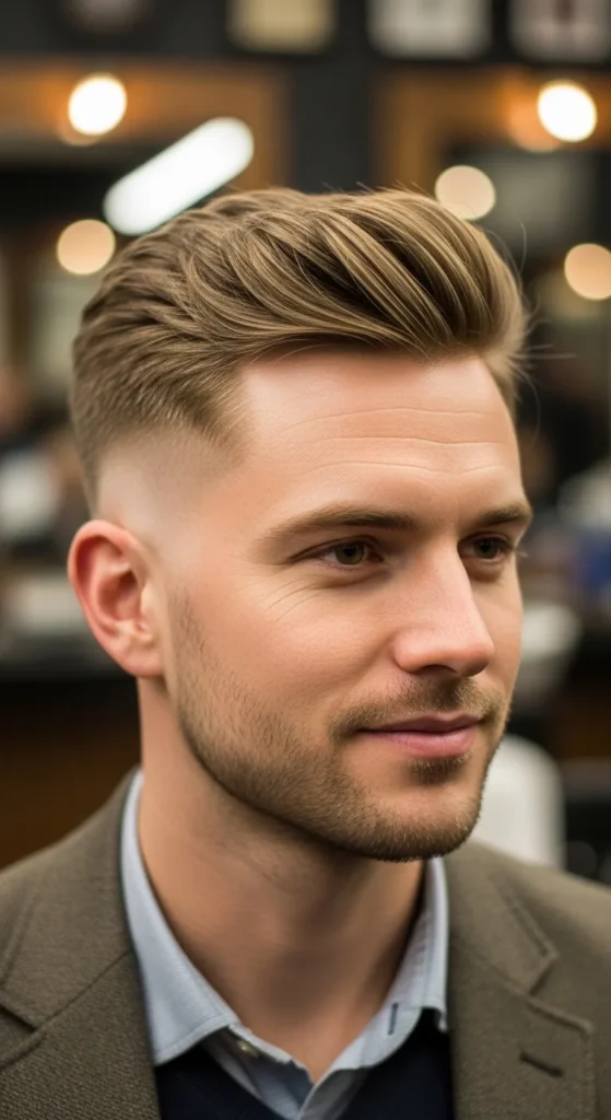 This is for guys who want an edge without too much height. The top stays short and slightly textured, forming a subtle faux hawk shape that feels clean and modern.