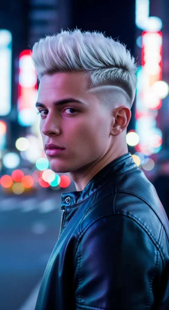 Barber Suggestion: Use purple shampoo weekly. It keeps platinum tones fresh and prevents brassiness, which can dull the edgy vibe.