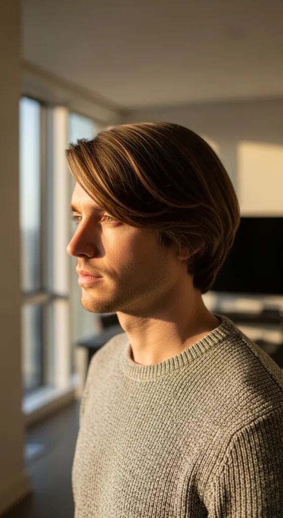 Barber Suggestion: Ask your barber for long feathered layers starting near the crown. This helps the hair flow naturally instead of sitting heavy, which keeps the bangs light and moving throughout the day.