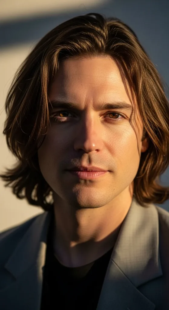 This hairstyle blends soft layers with a natural flow that frames the face effortlessly. The strands fall with controlled movement, giving a slightly mysterious, understated aesthetic that feels both modern and artistic.