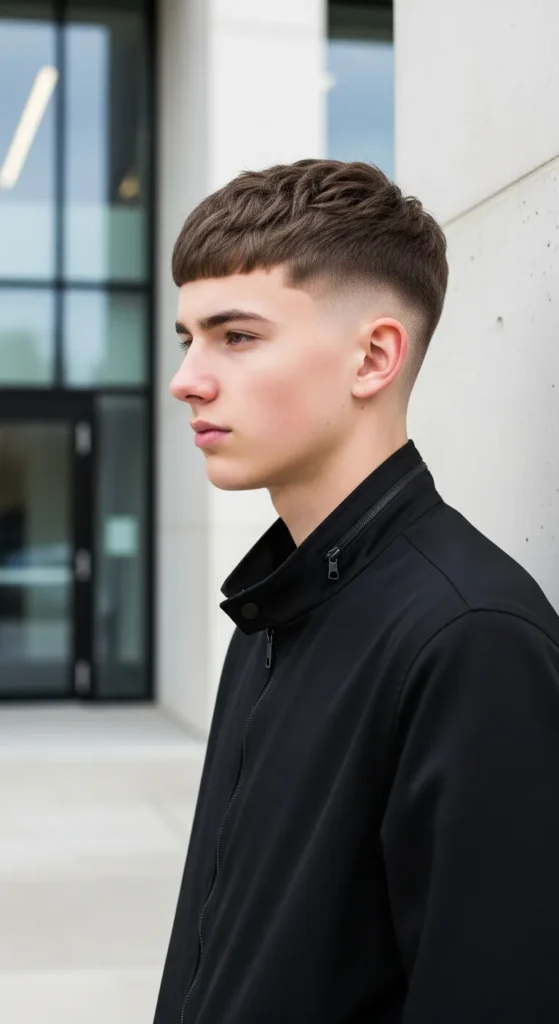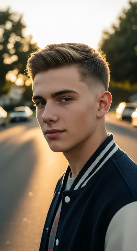 This haircut blends a soft crop with light texture on top, creating a relaxed yet tidy look. The sides stay neatly tapered while the top keeps enough movement to feel casual, making it perfect for everyday style without looking overly styled.