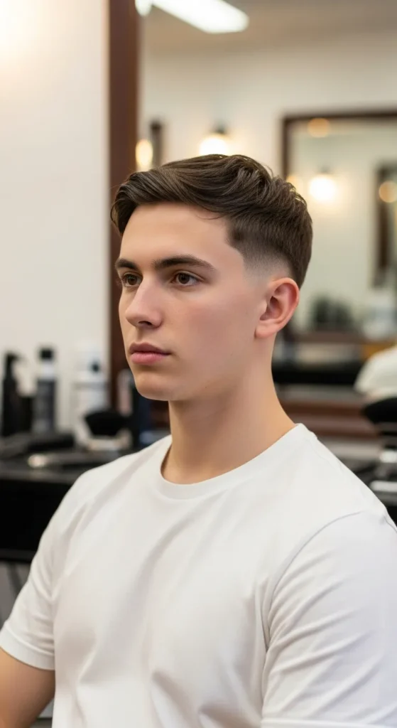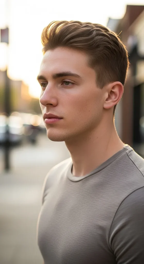 A modern Ivy League with added texture on top gives structure without flattening your hair. It’s clean but not rigid, and the slight lift at the front boosts overall volume.
