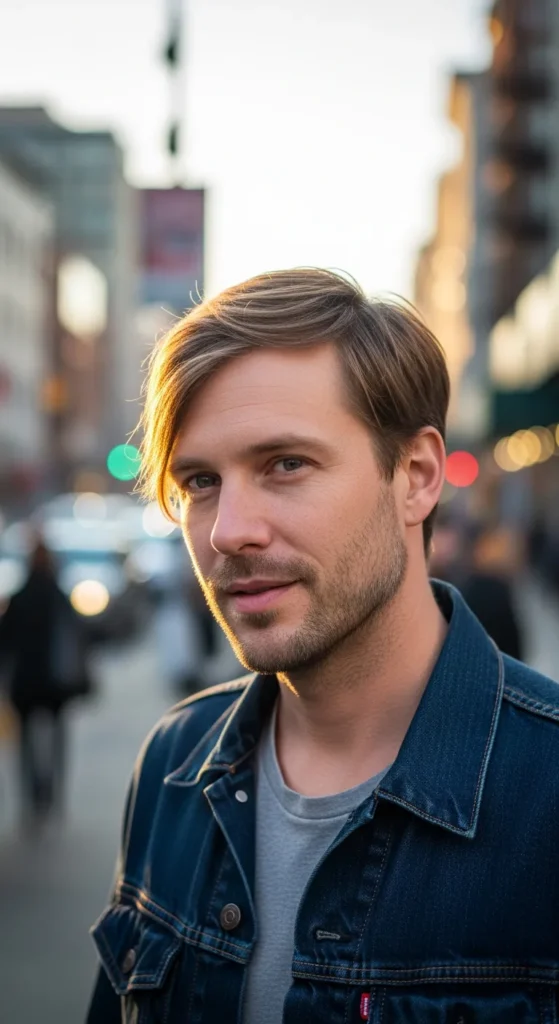 This style sweeps the hair diagonally, creating movement and natural lift. It avoids flatness by redirecting the hair’s flow, making thin strands look fuller from every angle.