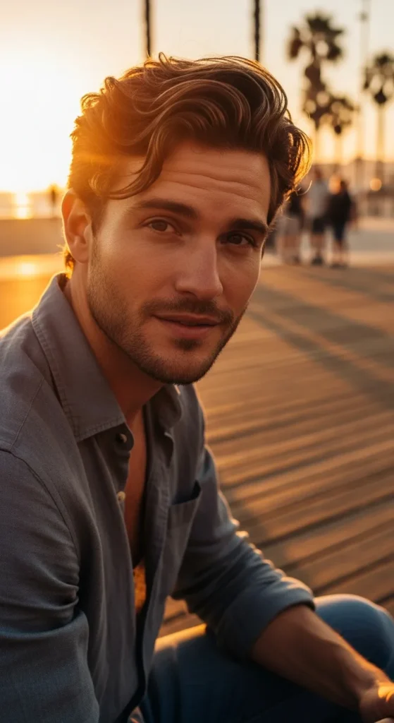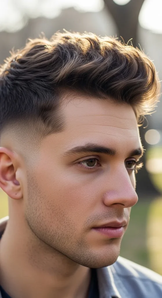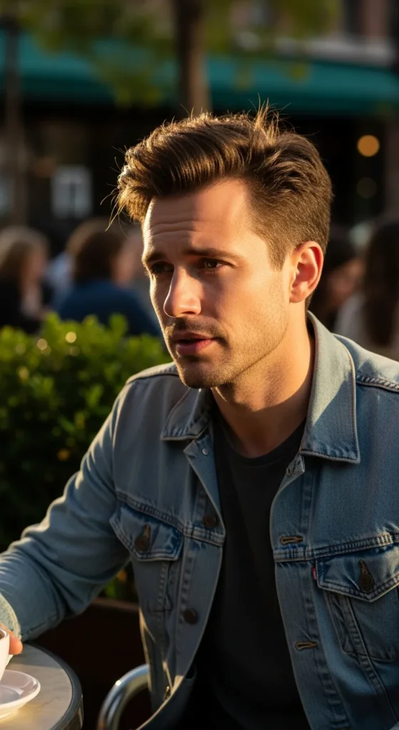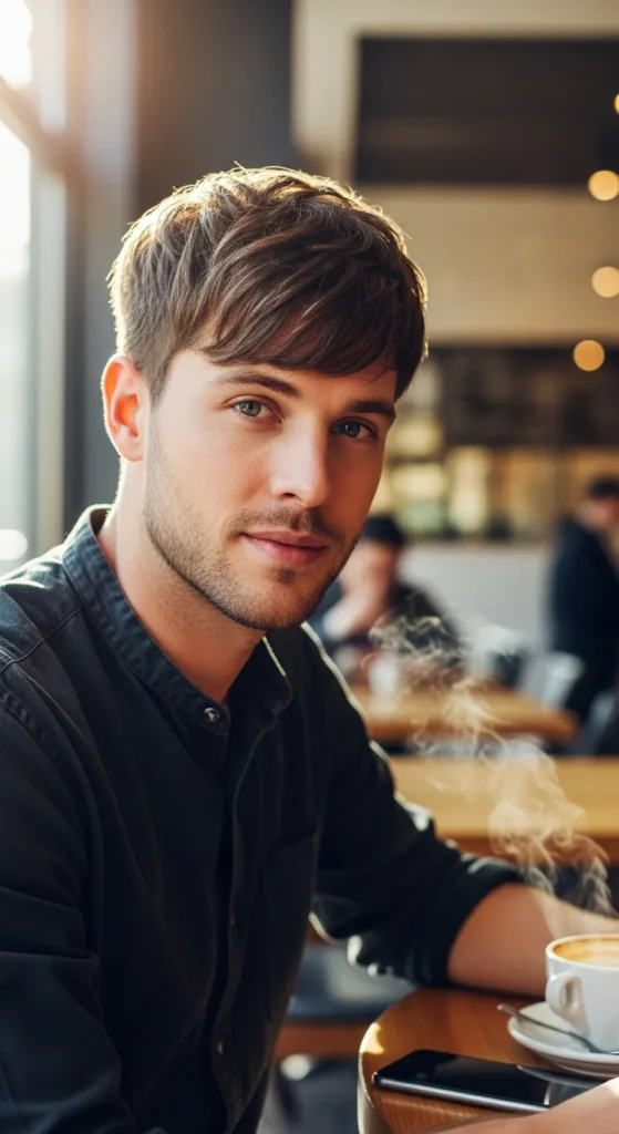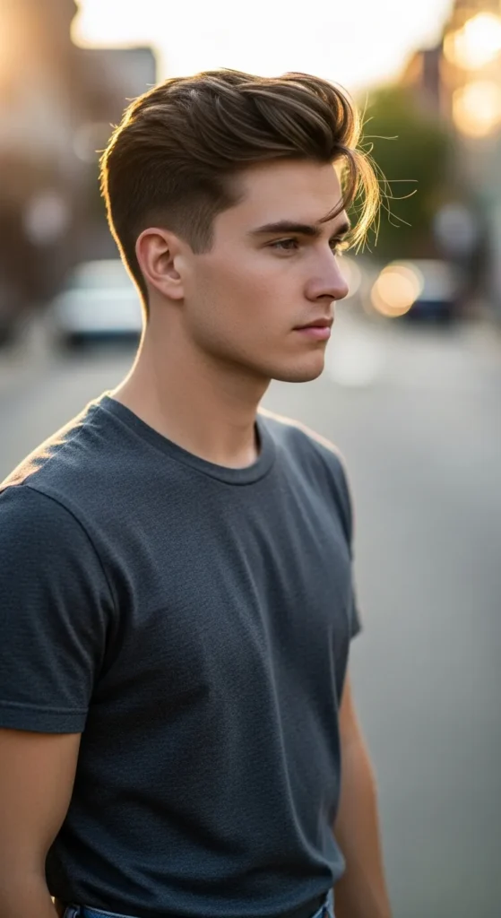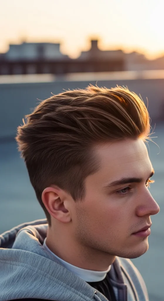 This hairstyle embraces slight messiness so cowlicks appear intentional rather than accidental. The textured layers allow movement while keeping the overall silhouette balanced.