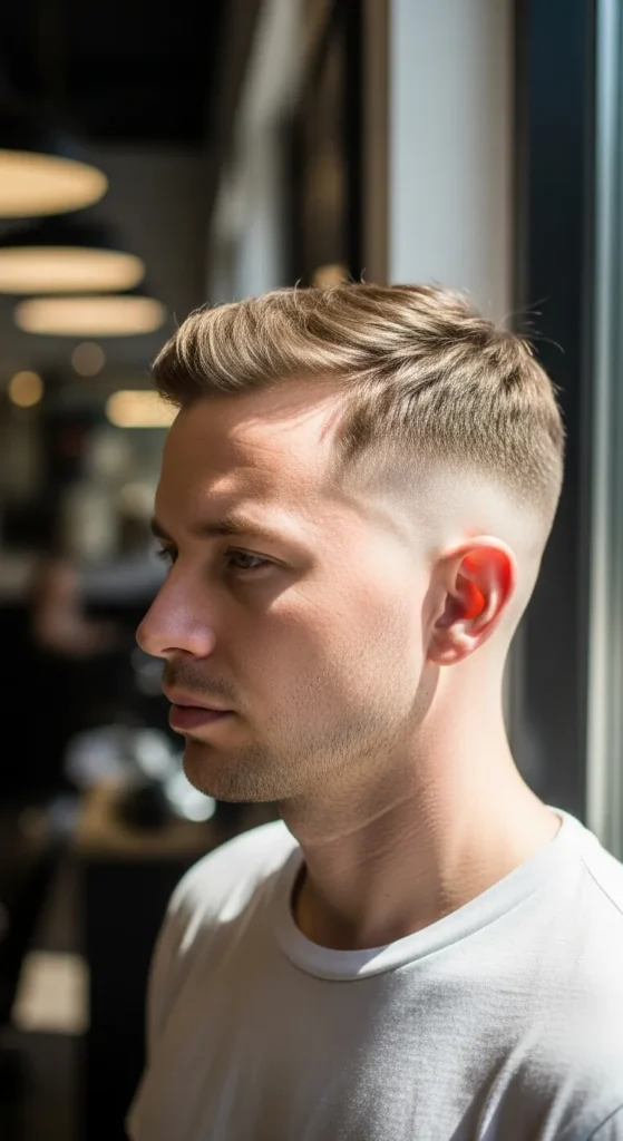 Barber Suggestion: Ask your barber to cross-cut the crown area. This removes bulk and helps stubborn hair lay flatter throughout the day.