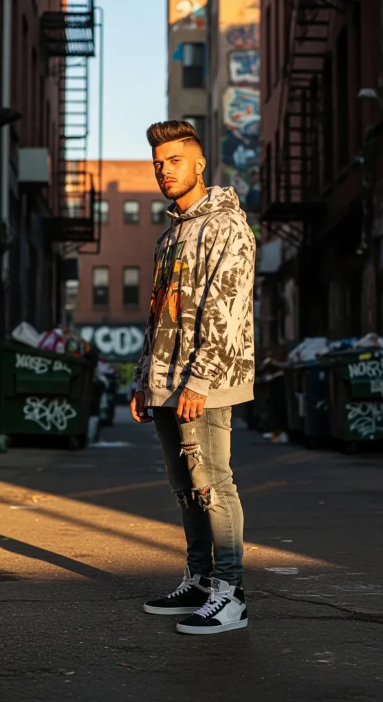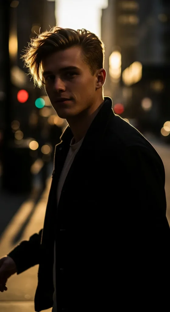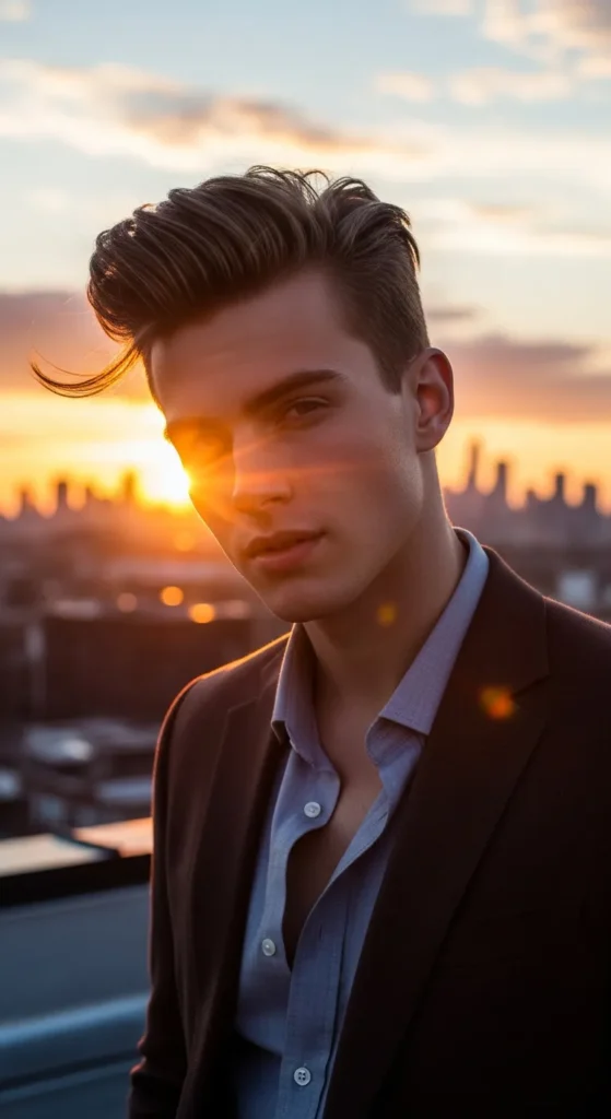 Instead of slicking back tightly, this version keeps the hair lifted and loose. It adds body while keeping a clean, confident shape.