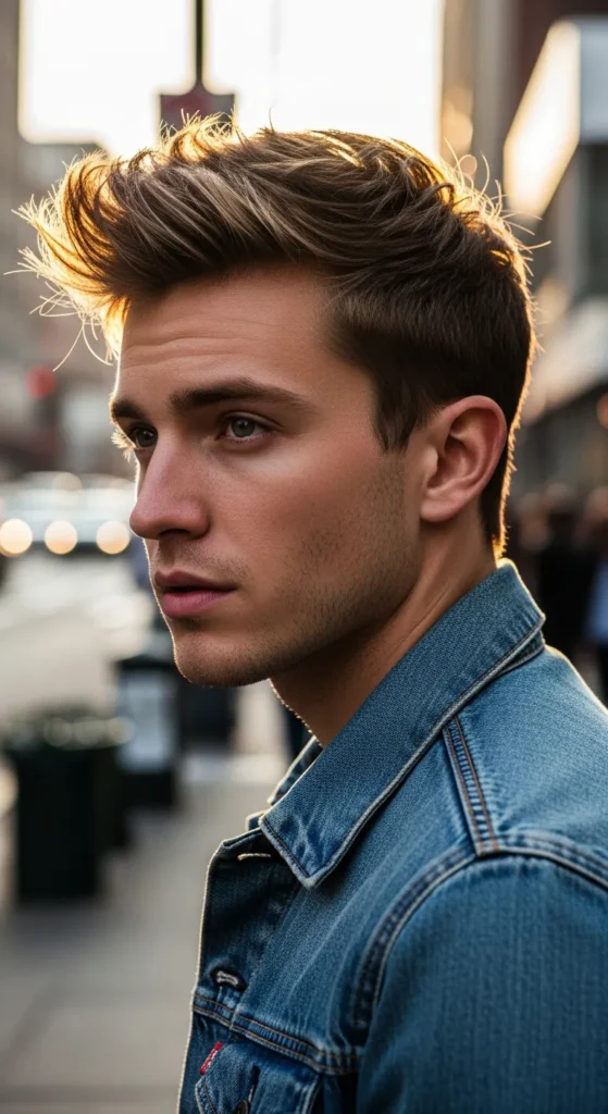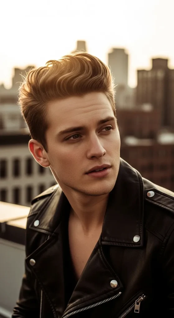 A relaxed quiff that adds volume at the front without looking overly styled or stiff.