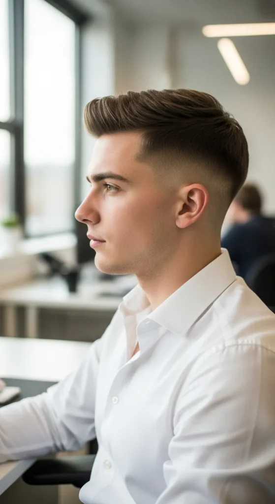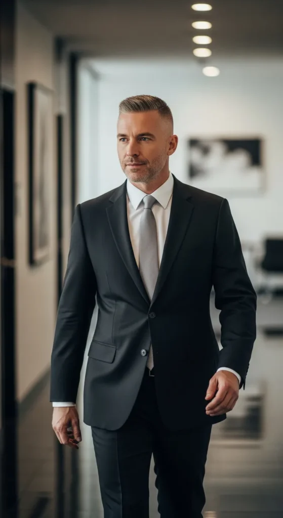 A refined crew cut with slightly longer top and clean contours gives a disciplined yet stylish look. It’s perfect for industries that value sharpness and minimalism.