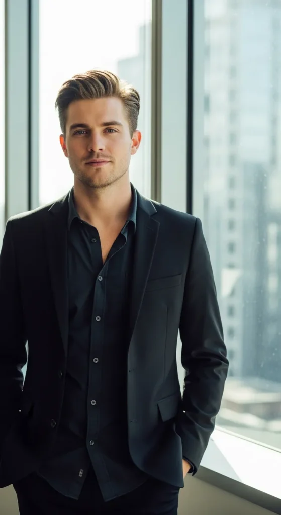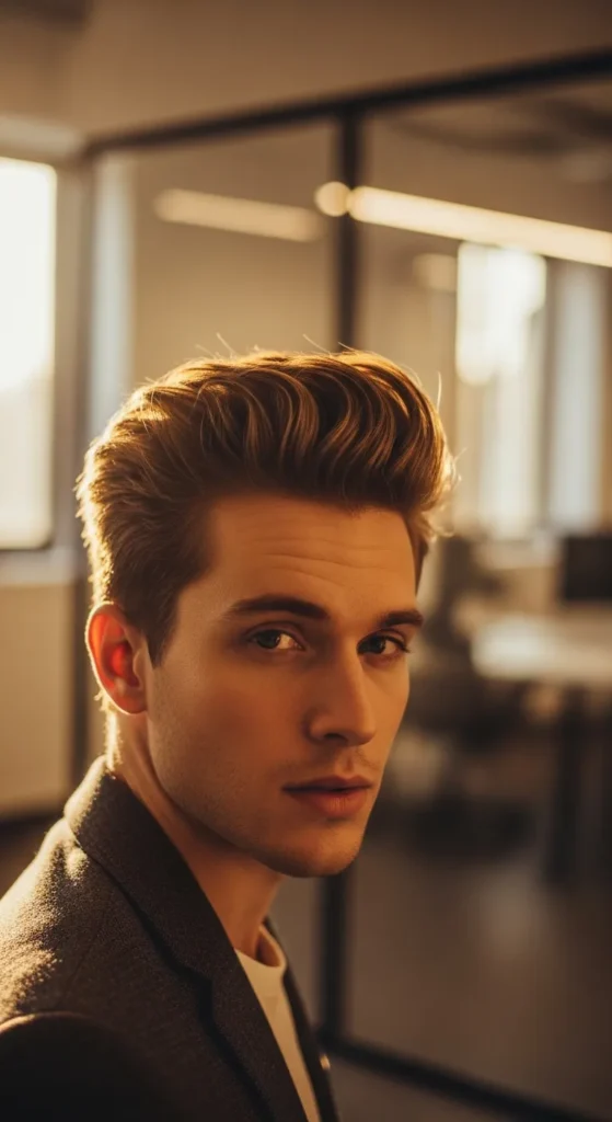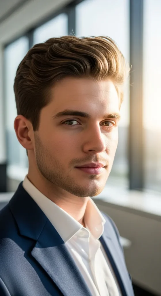 A relaxed quiff with natural volume gives you a confident edge while still staying interview-appropriate. It’s stylish but controlled, making it perfect for creative or modern workplaces.