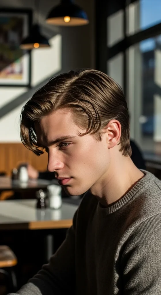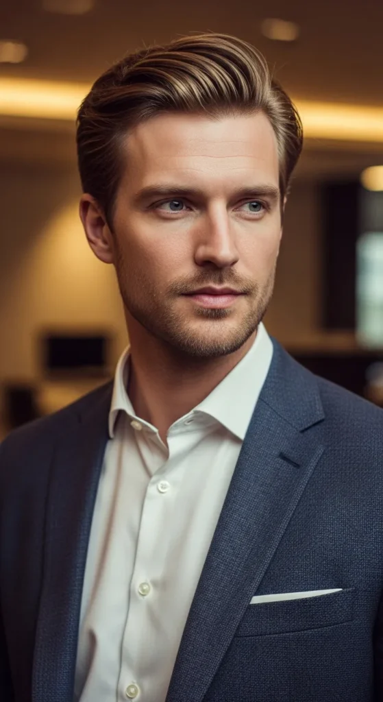 A classic side part becomes powerful when you keep some bulk on both sides. The balance between structure and fullness makes your face look wider without losing that sharp, clean feel.