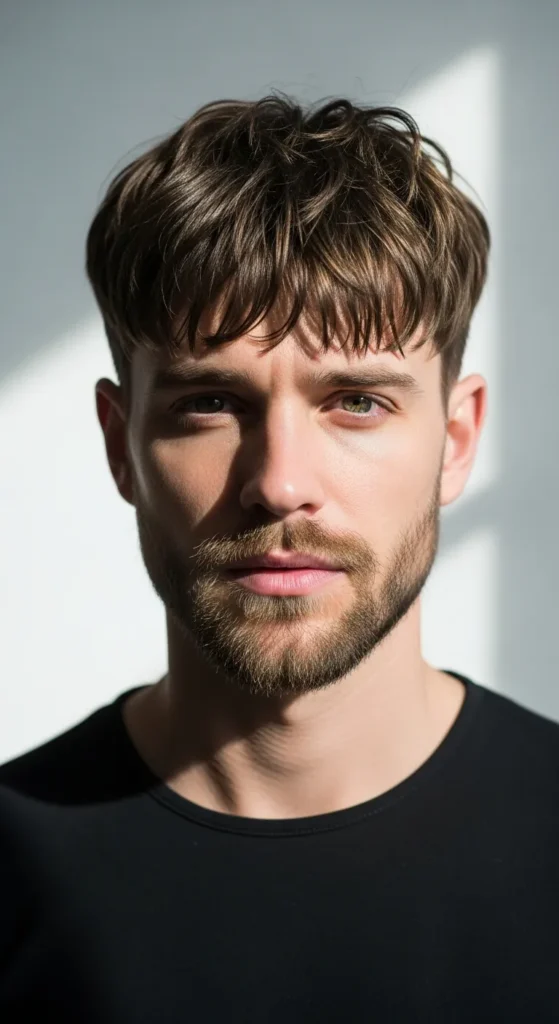 A controlled textured fringe that keeps thickness at the front but removes weight from the sides. It frames the face while preventing overwhelming volume.