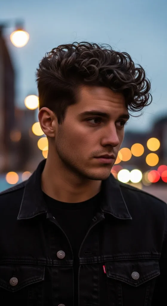 Neatly defined curls shaped with precision. This look feels refined and intentional, perfect for men who want structure with texture.
