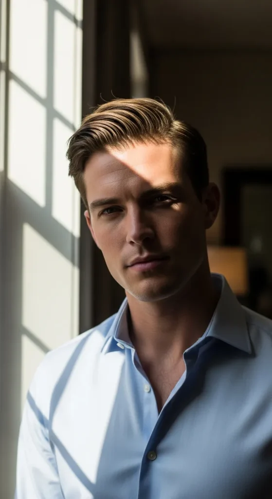 Barber Suggestion: Train the part while hair is damp. Consistent styling helps the curtain shape settle naturally over time.