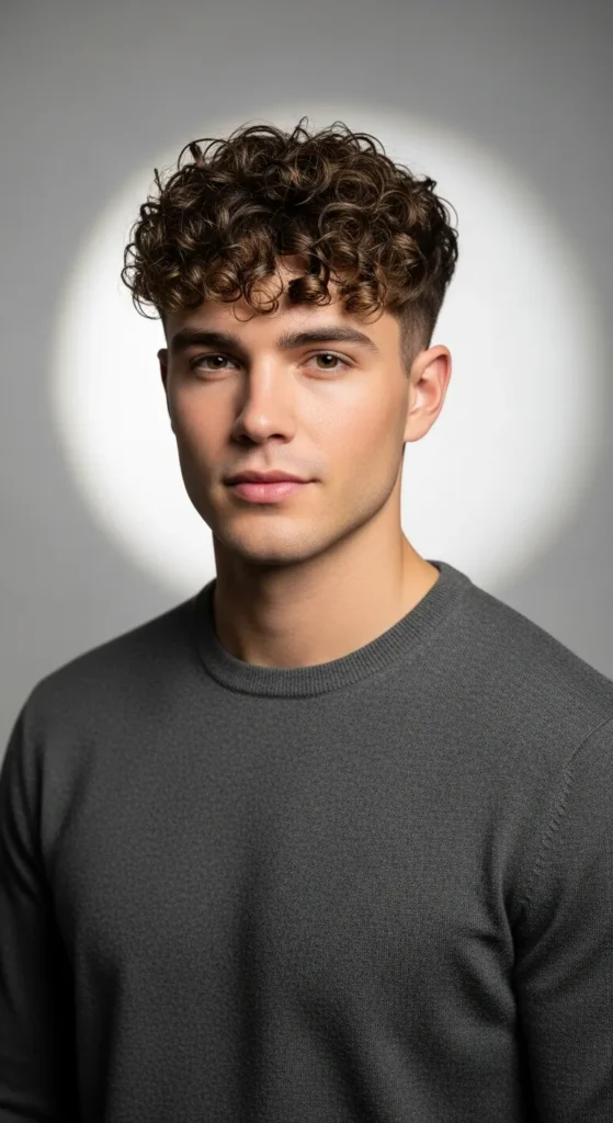 Curly fringe falling slightly over the forehead adds a relaxed yet stylish vibe. It softens facial features and gives a trendy, approachable look.