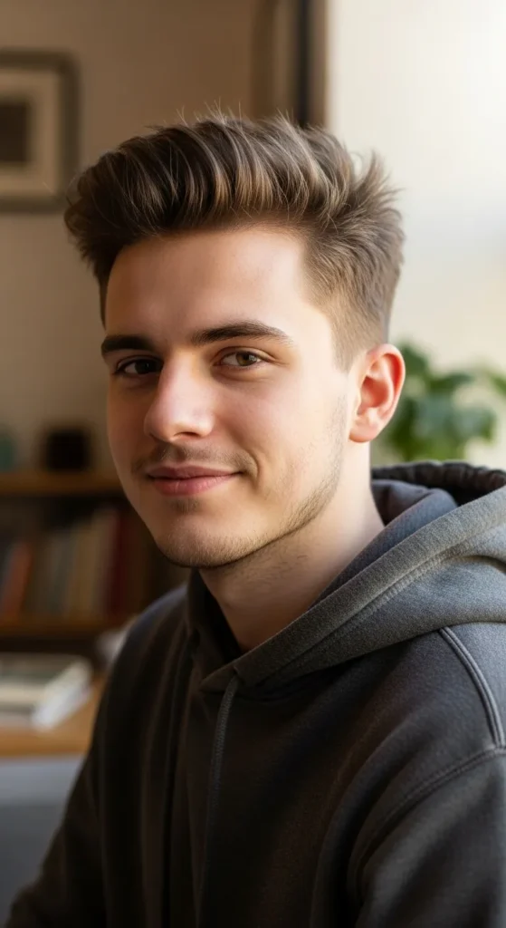 Barber Suggestion: Keep the fringe slightly longer than the sides. This contrast draws attention forward and enhances the textured effect naturally.