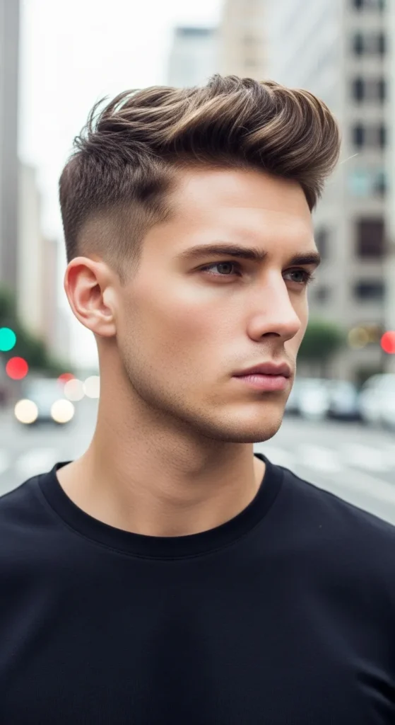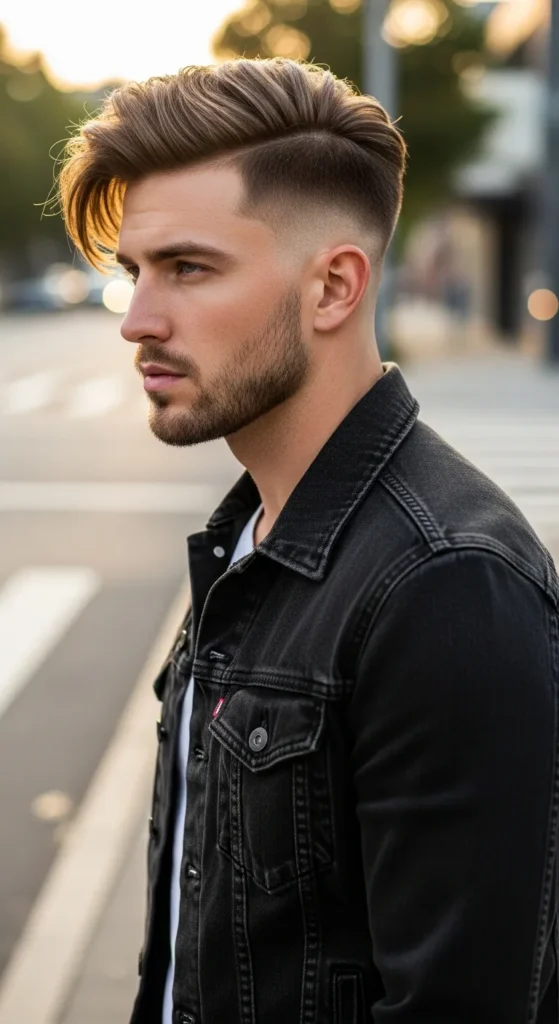 The Blade Sweep Undercut features a strong undercut with long top hair swept dramatically to one side, creating a sharp flow that looks powerful and modern. It’s bold but surprisingly wearable for everyday style.