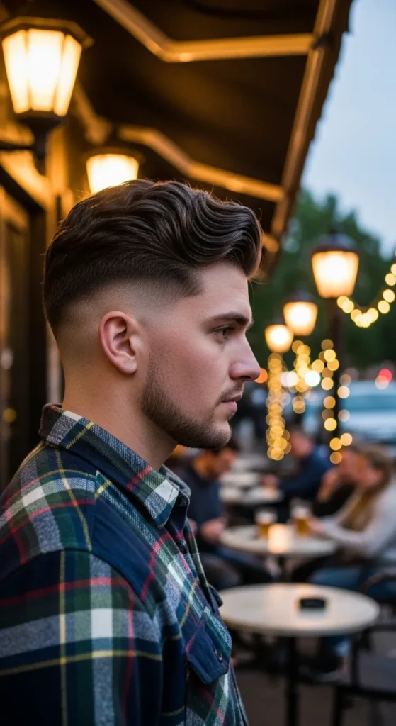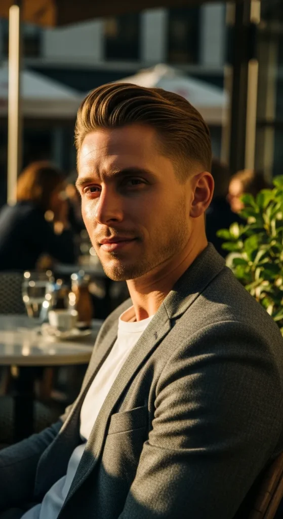 Barber Suggestion: Use a lightweight styling cream instead of heavy pomade. This keeps the sweep natural while allowing movement throughout the day, which prevents the top from looking stiff or overly styled.