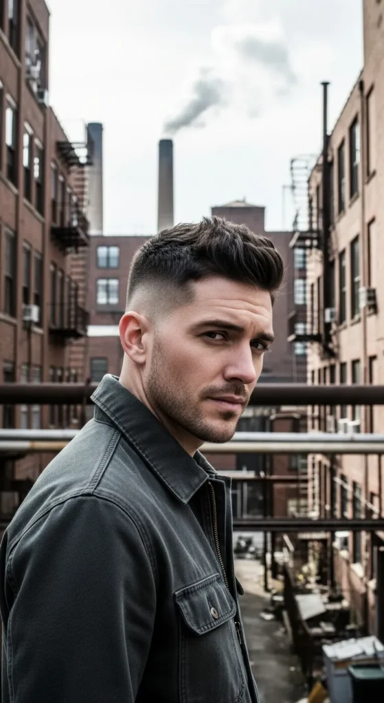 The Granite Crop Undercut keeps the top short but heavily textured, creating a bold and masculine look. The tight undercut sides amplify the strong, structured shape.