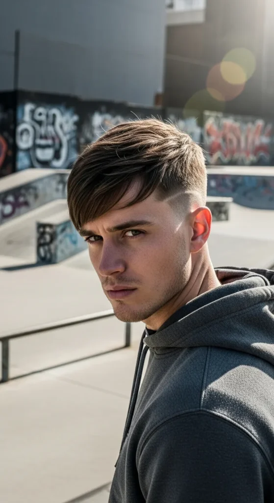 The Steel Fringe Undercut keeps the sides sharp while the top falls slightly forward as a textured fringe. It feels edgy and youthful, giving a confident look without needing complicated styling.