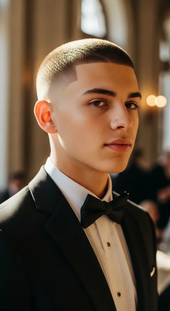 Barber Suggestion: Moisturize your scalp regularly before prom week. Short styles expose the scalp more, and healthy skin elevates the entire look.