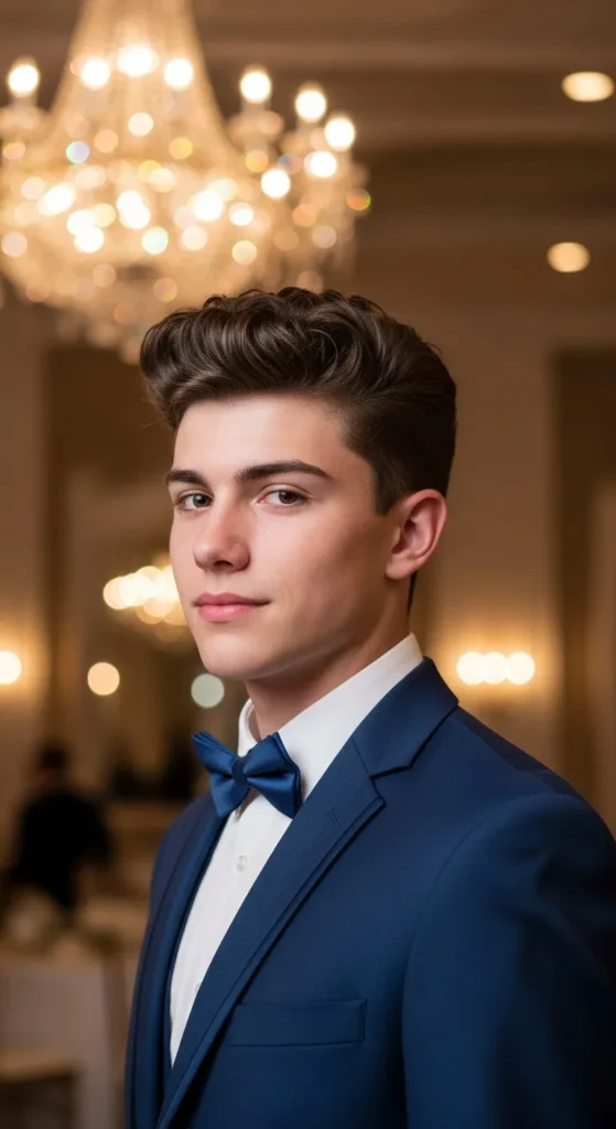 Short, structured, and slightly tousled on top, the Textured Ivy balances class and youth. It’s clean enough for formal photos but relaxed enough for after-party vibes.