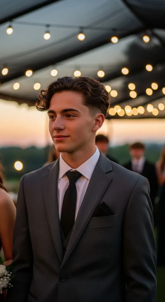 Barber Suggestion: Hydrate curls with a light leave-in conditioner before styling. Prom venues can get warm, and moisture keeps curls defined instead of frizzy.