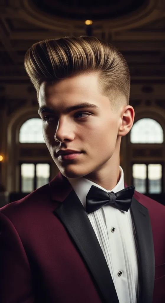 Volume in the front with faded sides gives you that confident, elevated silhouette. The Modern Pompadour stands tall, literally, in prom group photos.
