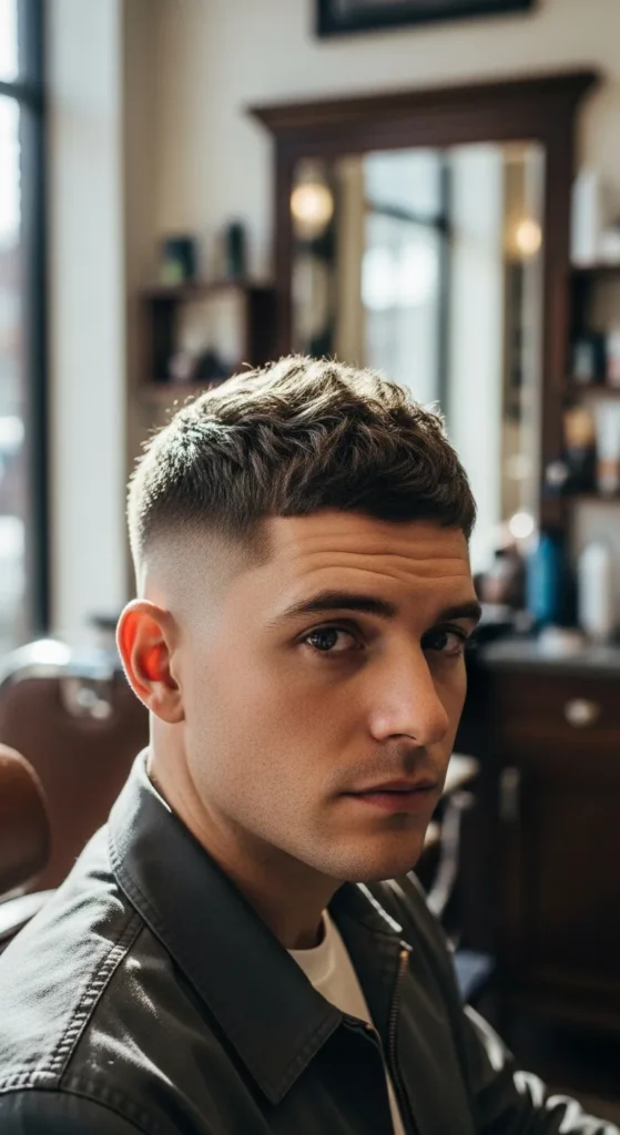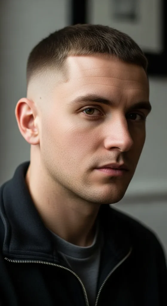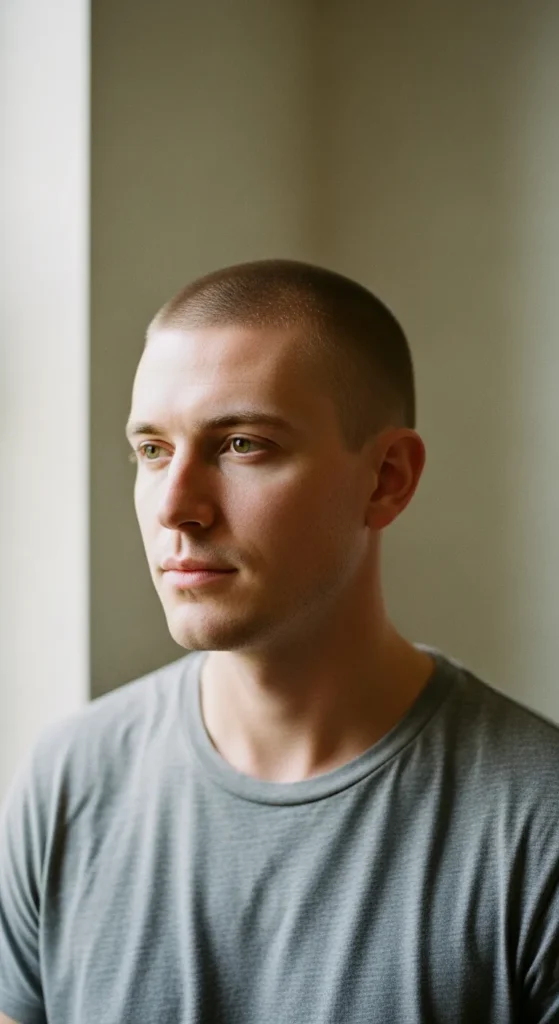 The Shadow Buzz sits between skin and stubble, creating a soft but masculine look. It’s subtle, modern, and works great for guys who want short hair without extreme exposure.