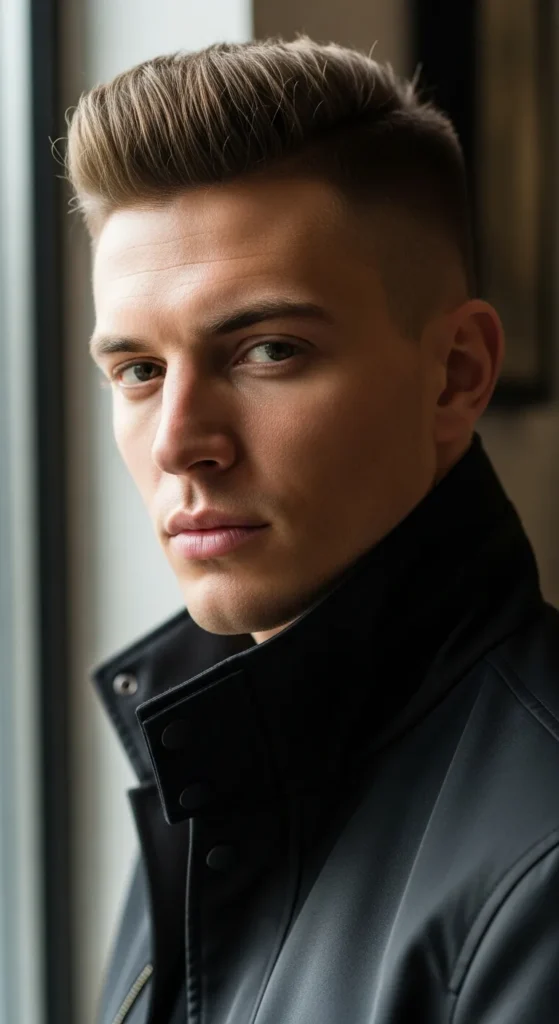 Iron Fade blends skin-tight sides into a short, solid top. It’s bold without being loud and works especially well for men with strong facial features.